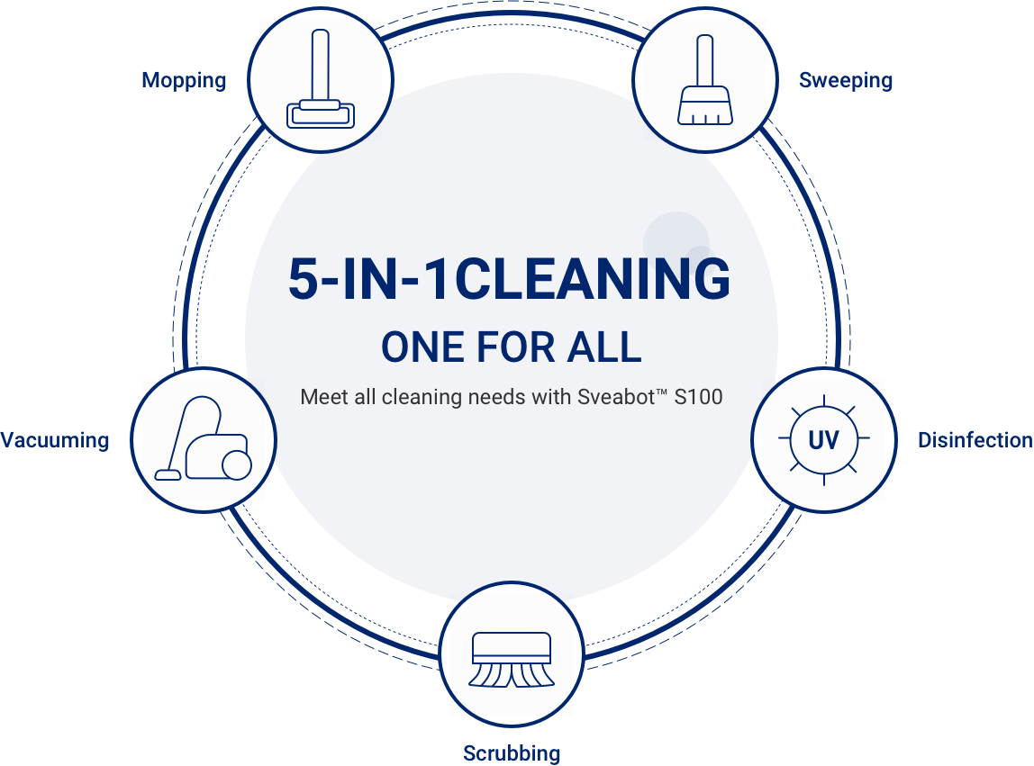 Sveabot™ S100 is your ultimate cleaning companion for various hard surfaces. With its 13 kPA vacuum power and air conduct, it effortlessly removes trash and debris.