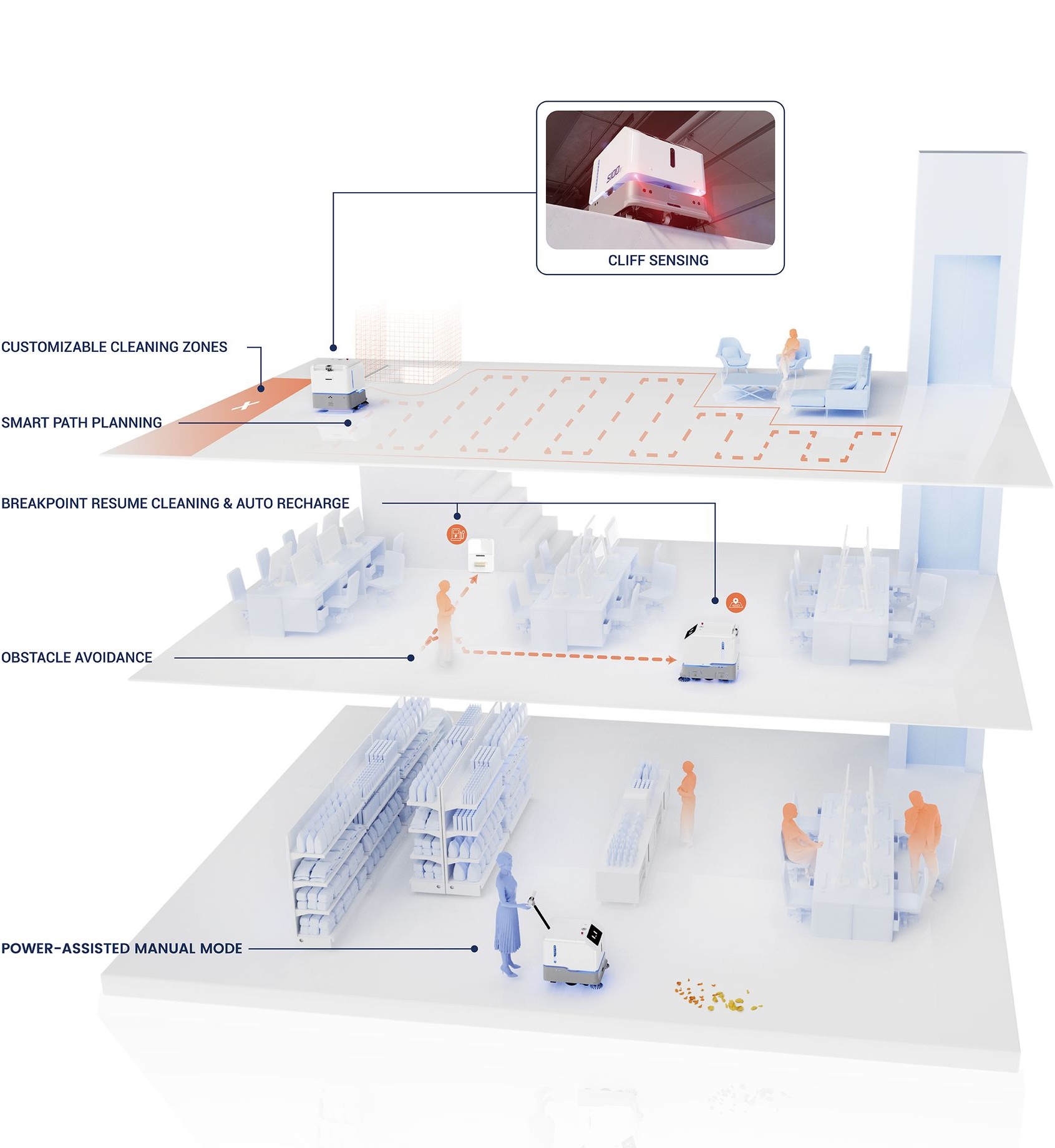 The seamless integration of multiple cutting-edge sensors, such as LiDAR, TOF, depth cameras, and more, combined with SLAM technology, empowers Sveabot™ S100 to intelligently and accurately map and navigate in diverse scenarios.