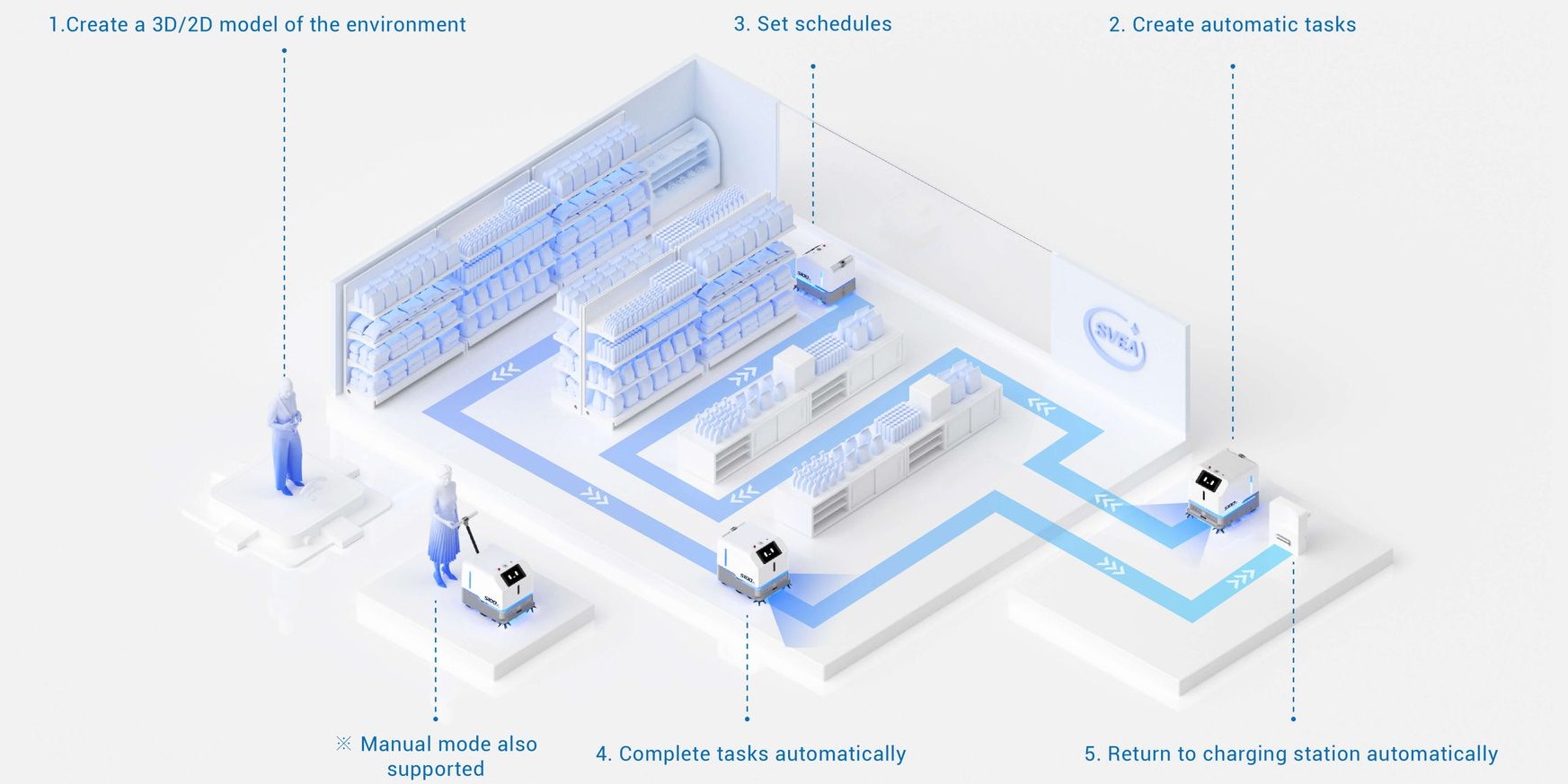 Sveabot aims to provide electrical tools and robot solutions to various industrial sectors, including facility management and factory & warehouse automation.