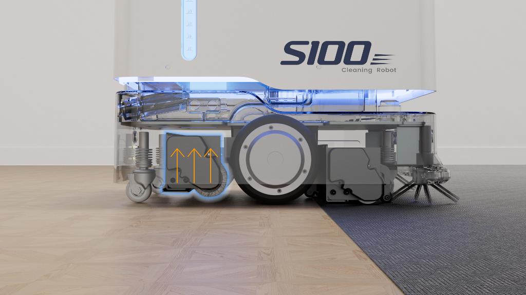 The mopping unit automatically lifts up when meeting undercoat carpet.